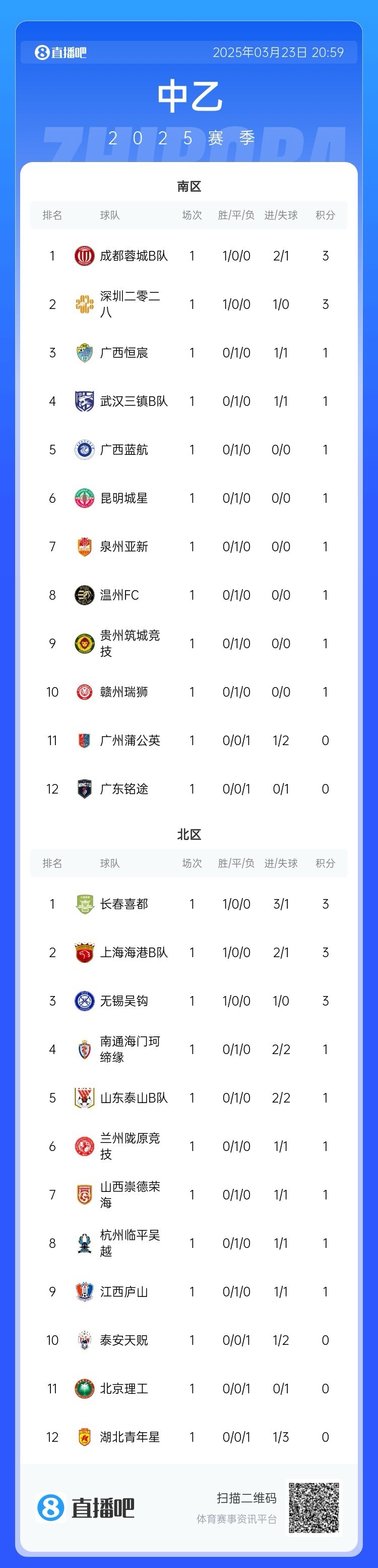3月23日訊 中乙聯(lián)賽第一輪今天結(jié)束全部爭奪,蓉城B隊2-1擊敗廣州蒲公英,三鎮(zhèn)B隊戰(zhàn)平廣西恒宸,無錫吳鉤、長春喜都、深圳二零二八收獲開門紅。