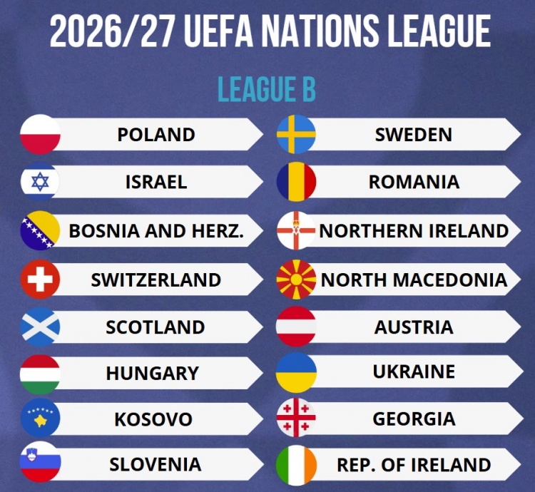 2026-27賽季歐國聯(lián)B級別代表隊名單↓