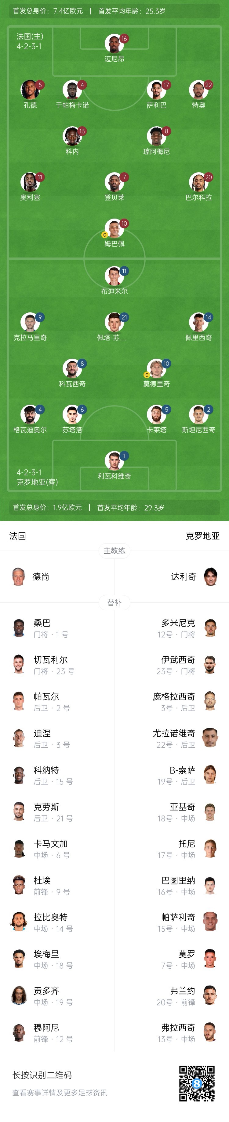 3月24日訊 歐國(guó)聯(lián)1/4決賽次回合,法國(guó)vs克羅地亞比賽即將打響。賽前首發(fā)出爐。首回合對(duì)陣,克羅地亞2-0法國(guó)。