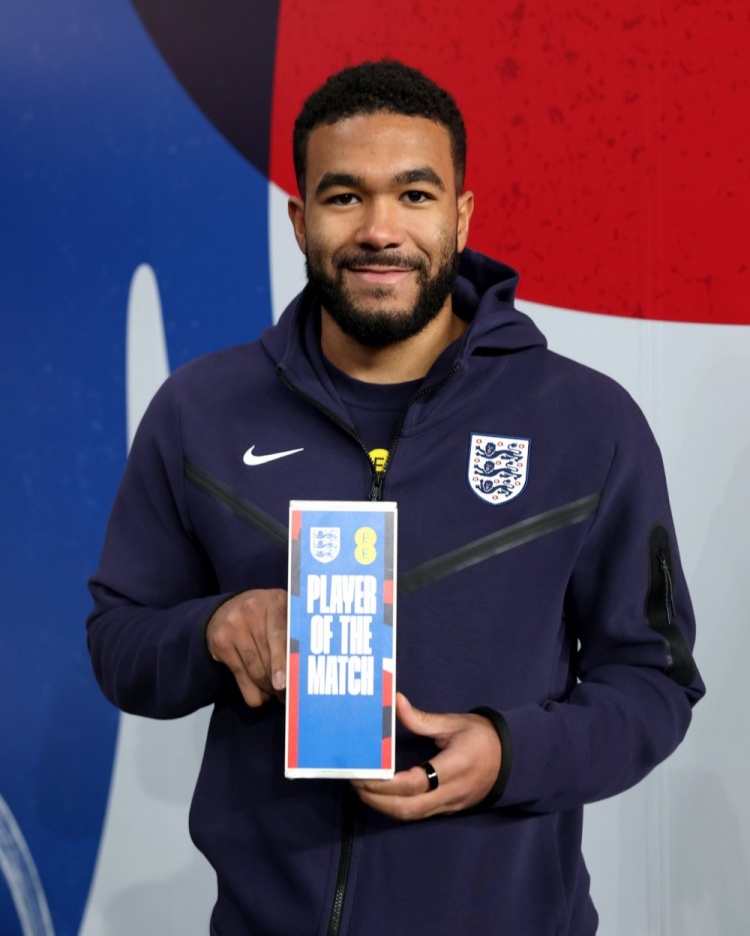 英格蘭隊(duì)官方宣布,里斯-詹姆斯當(dāng)選本場(chǎng)比賽英格蘭隊(duì)內(nèi)最佳球員。里斯-詹姆斯職業(yè)生涯至今為英格蘭隊(duì)出戰(zhàn)18場(chǎng)比賽,貢獻(xiàn)1粒進(jìn)球和3次助攻。