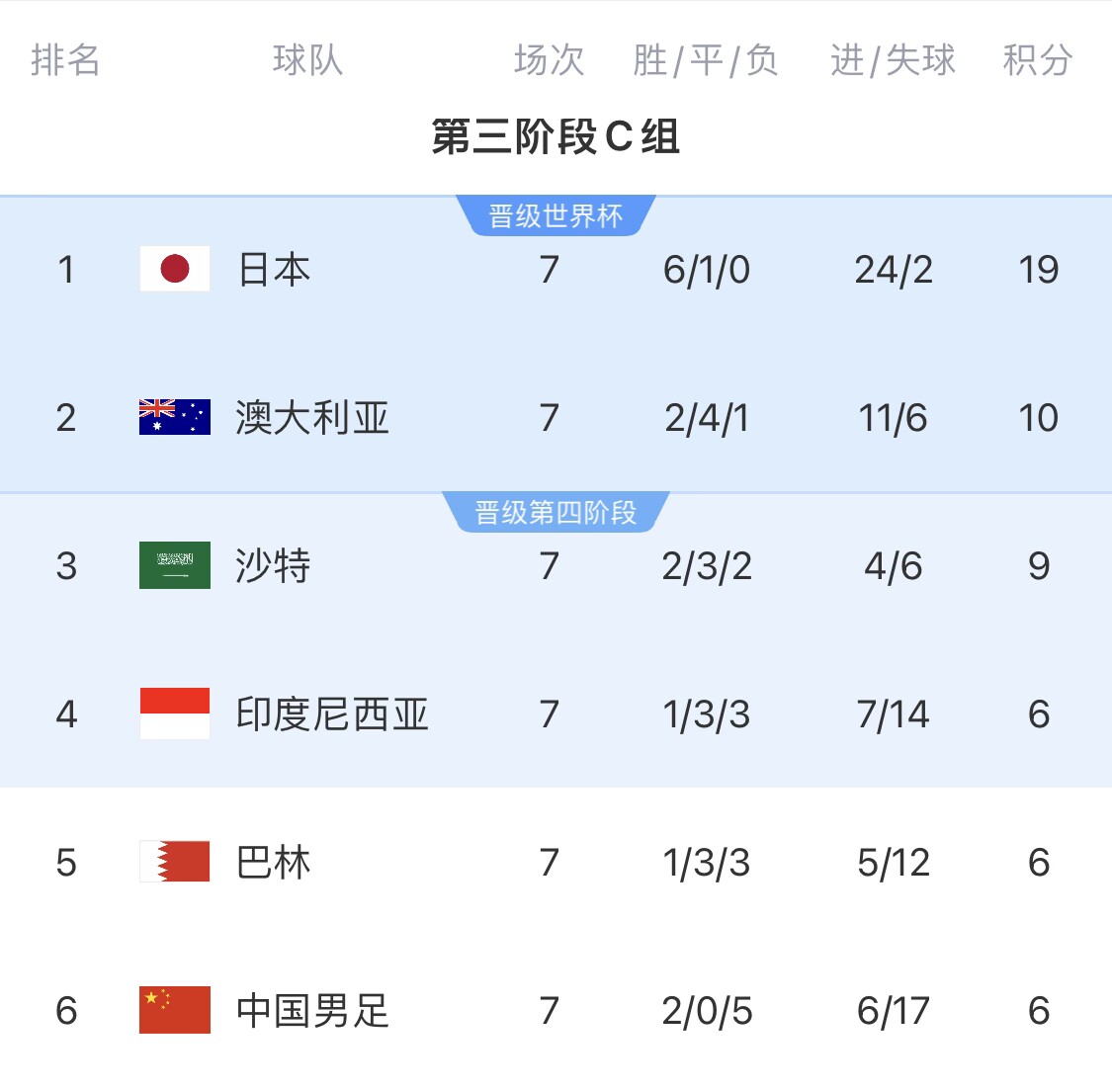 (注:澳大利亞如果戰(zhàn)勝中國,積分13,沙特輸給日本積分9;接下來的兩場哪怕澳洲也輸給日本,末輪只要對(duì)沙特保持不敗即可直通世界杯。在沙特保持第3的情況下,印尼、巴林誰拿分,都會(huì)卡住國足上升爭四的路線)