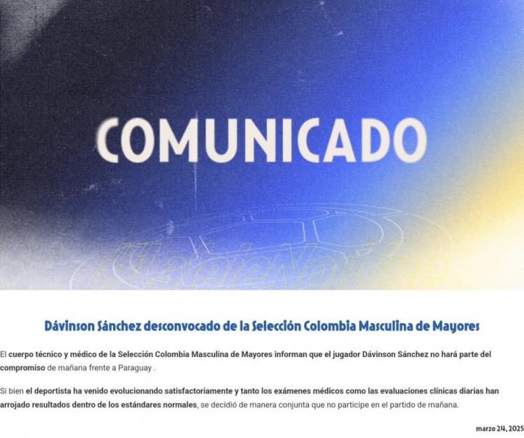 3月25日訊 哥倫比亞國(guó)家隊(duì)官方確認(rèn),達(dá)文森-桑切斯退出本期國(guó)家隊(duì)集訓(xùn)。