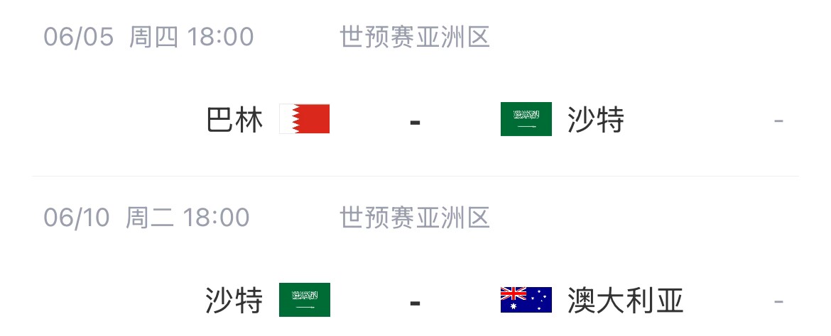 沙特賽程: