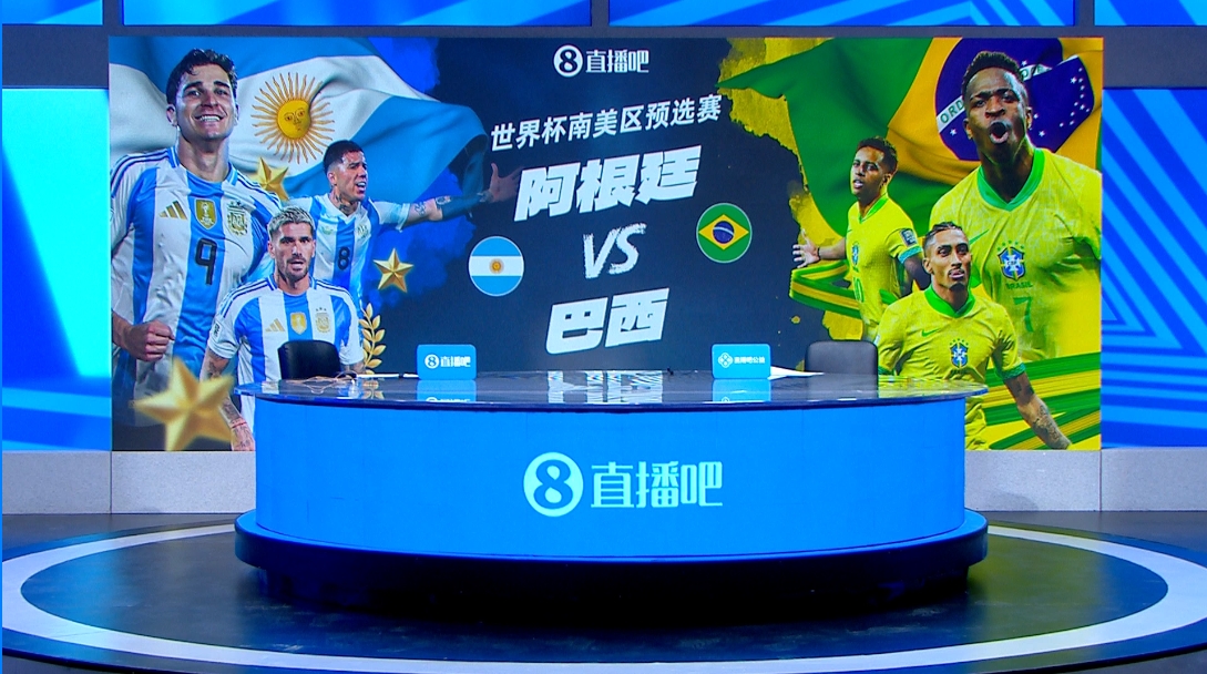 直播吧演播室準(zhǔn)備就緒,靜待南美德比!于鑫淼、王正坤解說(shuō)