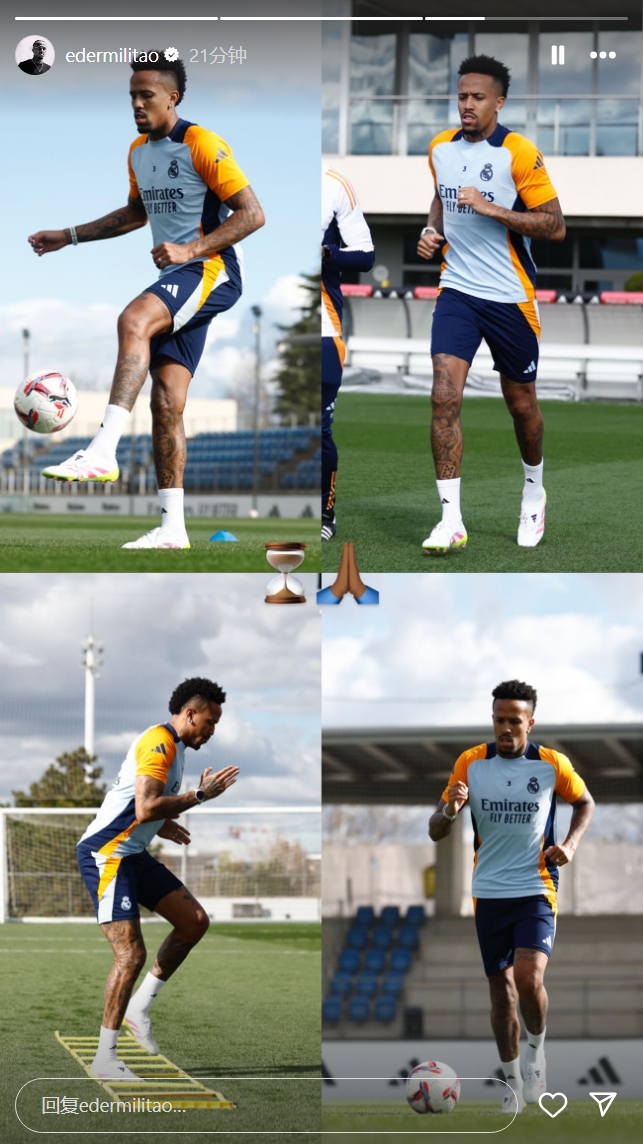 3月26日訊 今日米利唐更新個(gè)人社媒,曬出了自己恢復(fù)場地訓(xùn)練的照片,并配上了沙漏和祈禱的表情。