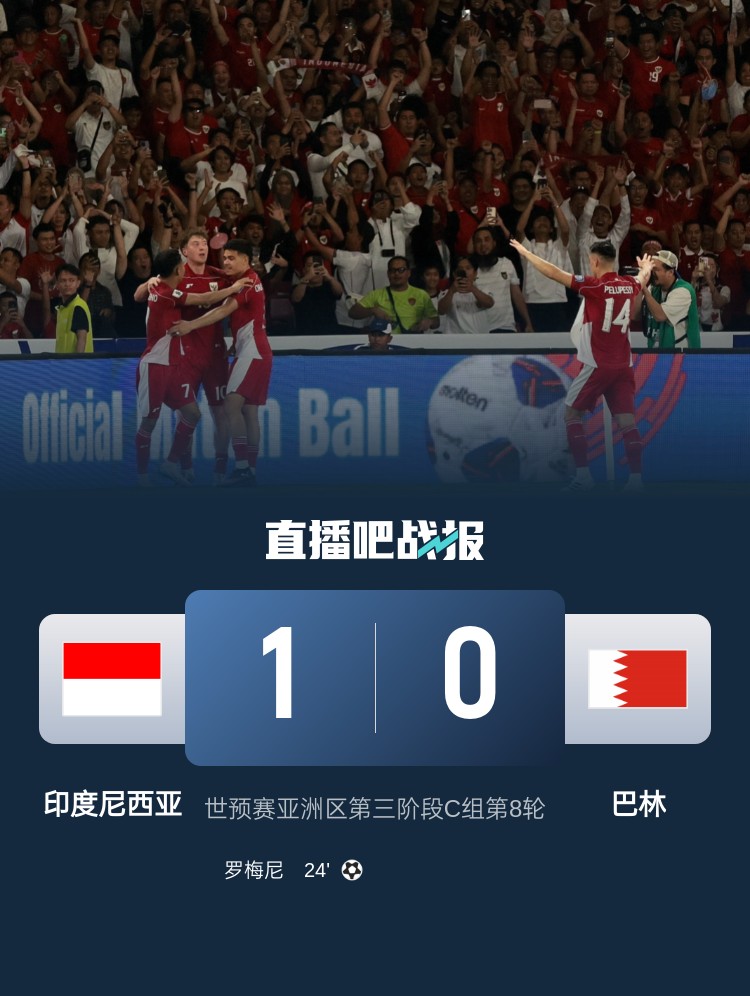 世預(yù)賽亞洲區(qū)第三階段C組第8輪,羅梅尼單刀破門,印度尼西亞1-0巴林。印尼此役后領(lǐng)先國足3分。