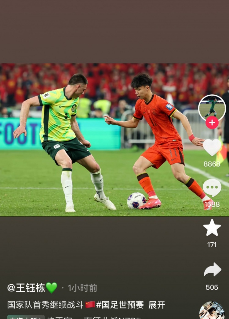 3月26日訊 今天,王鈺棟更新社媒,曬出了自己國(guó)足首秀的照片。