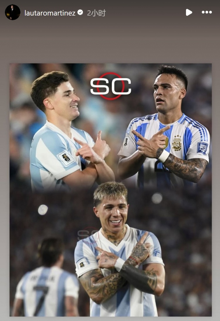3月26日訊 在本輪南美區(qū)世預(yù)賽,阿根廷4-1大勝巴西。本場比賽勞塔羅因傷缺戰(zhàn),而阿爾瓦雷斯、恩佐在進(jìn)球后都做出了勞塔羅標(biāo)志性慶祝動作。勞塔羅也在個(gè)人社媒轉(zhuǎn)發(fā)了三人進(jìn)球后同樣的慶祝動作照片。 本文標(biāo)簽: 足球 國家隊(duì) 阿根廷 意甲 國際米蘭