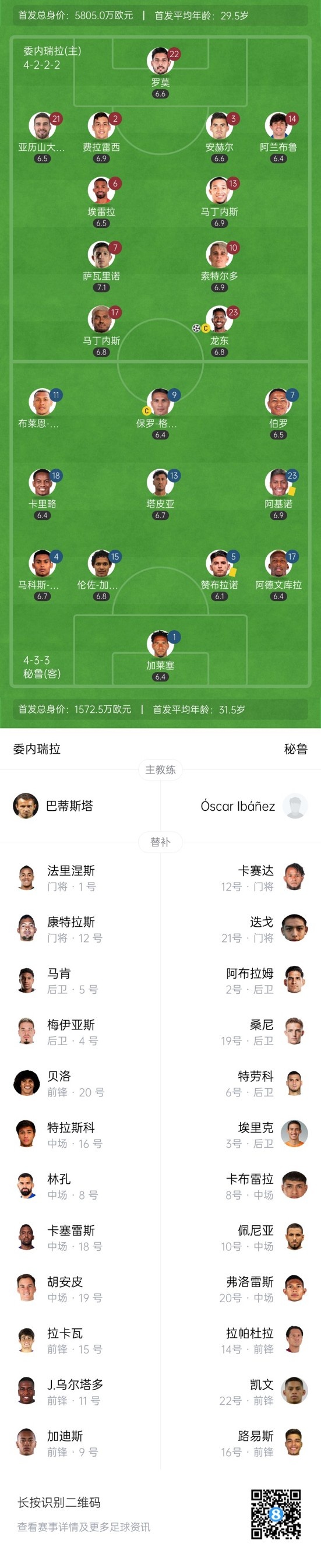 3月26日訊 北京時間3月26日08:00,世預賽南美區(qū)第14輪委內瑞拉迎戰(zhàn)秘魯的比賽,上半場龍東失單刀+點射破門首開記錄,布賴恩雷納破門無效,半場結束,委內瑞拉1-0秘魯。