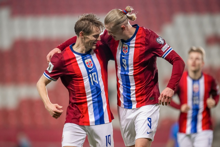 挪威陣中有著身價2億歐的哈蘭德、身價1億歐的厄德高兩位巨星,同時還有身價2800萬歐的努薩、身價2500萬歐的索爾洛特、身價2000萬歐的萊爾森等多名猛將,但這批球員還從未參加過國家隊大賽。