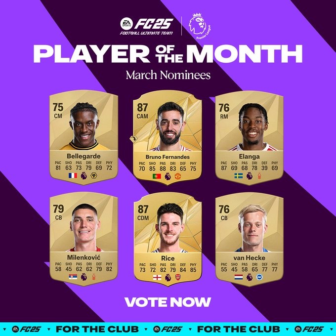3月27日訊 英超聯(lián)賽今天公布了3月份最佳球員候選名單,B費(fèi)、賴斯領(lǐng)銜。