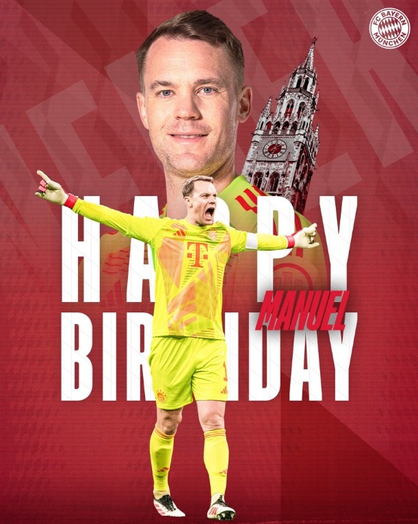 3月27日訊 德國隊(duì)和拜仁官方社媒更新動(dòng)態(tài),為諾伊爾送上生日祝福。