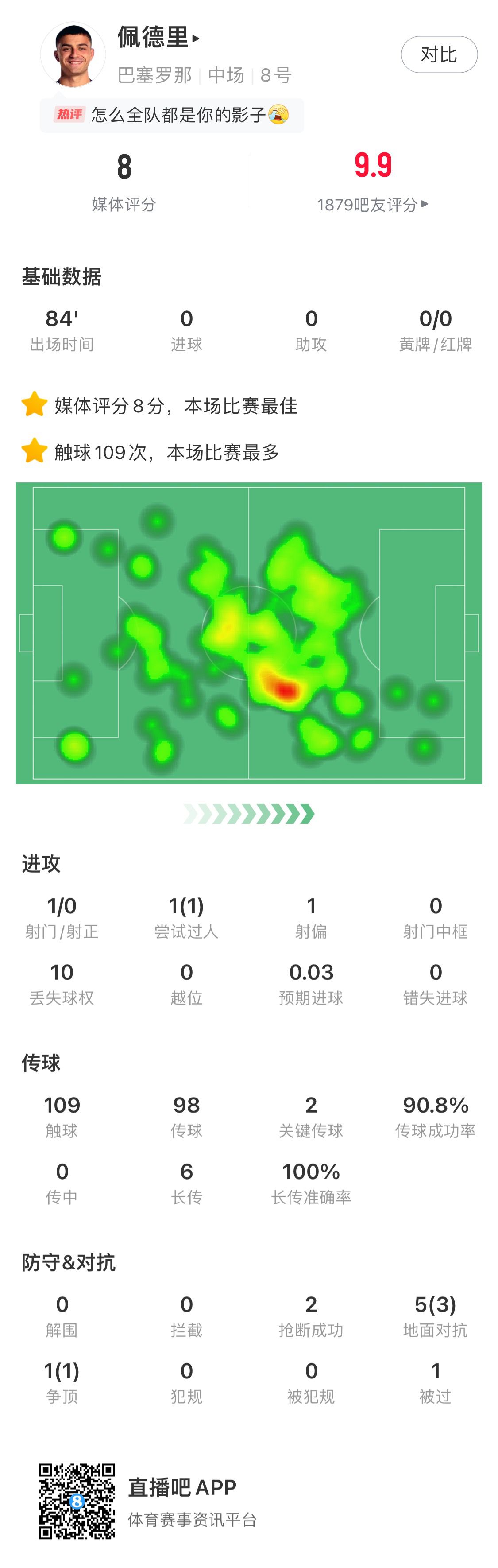 03月28日訊 國際比賽日后,巴薩補賽3-0擊敗奧薩蘇納,佩德里延續(xù)“大師級”表現(xiàn),109次觸球,98次傳球90.8%成功率,2次關(guān)鍵傳球,6次長傳100%成功率,2次搶斷成功。