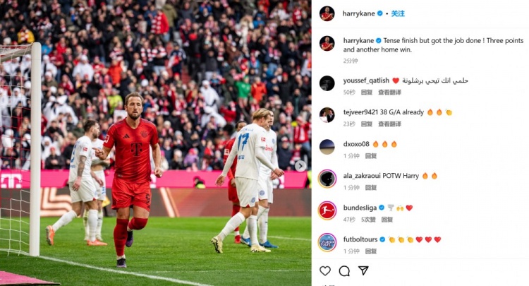 2月2日訊 拜仁在本輪德甲4-3險勝基爾,凱恩在本場比賽梅開二度。他也在賽后通過社媒曬出自己進球后的慶祝照,并配文:“最后時刻有些緊張,但我們還是完成了任務。3分到手,又一場主場勝利?!?/p>凱恩在本場比賽也達成個人德甲50場里程碑,共計為拜仁打進55球,并有16次助攻。 本文標簽: 足球 德甲 拜仁慕尼黑 荷爾斯泰因基爾