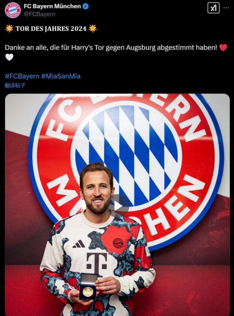 2月2日訊 拜仁在本輪德甲4-3險(xiǎn)勝基爾,凱恩梅開二度。他還在賽后領(lǐng)取了Sportschau德國足壇年度最佳進(jìn)球獎(jiǎng)。