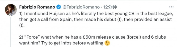 羅馬諾3月份多次報道關于伯恩茅斯中衛(wèi)懷森的消息,自媒體The 44轉發(fā)相關消息,并寫道:“自3月17日以來,羅馬諾已經(jīng)9次提到懷森的名字,歡迎來到經(jīng)紀人向媒體付費,以強行推動球員轉會到更大俱樂部的時代?!?/p>