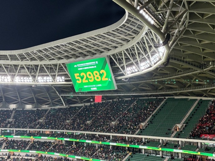 本場(chǎng)比賽是國(guó)安隊(duì)2025賽季首個(gè)中超主場(chǎng)賽事,加之球隊(duì)為于大寶舉辦退役儀式,因此共有52982名球迷來(lái)到現(xiàn)場(chǎng),共同見證了本場(chǎng)比賽。