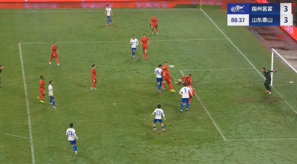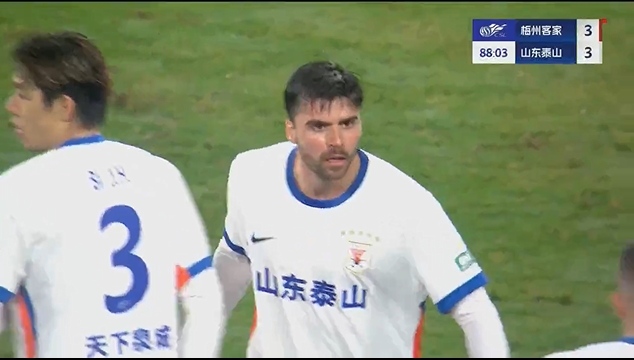 03月29日訊 梅州vs泰山第87分鐘,泰山左路傳中,澤卡頭球破門,單場梅開二度!泰山連追三球3-3梅州!