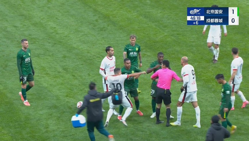 03月29日訊 中超第3輪,北京國安vs成都蓉城。比賽上半場補(bǔ)時階段,費(fèi)利佩倒地時踩到恩加德烏腹部,兩隊爆發(fā)沖突,馬寧趕緊拉開兩方球員。場上比分國安1-0蓉城。 本文標(biāo)簽: 足球 中超 中國足球 成都蓉城 北京國安