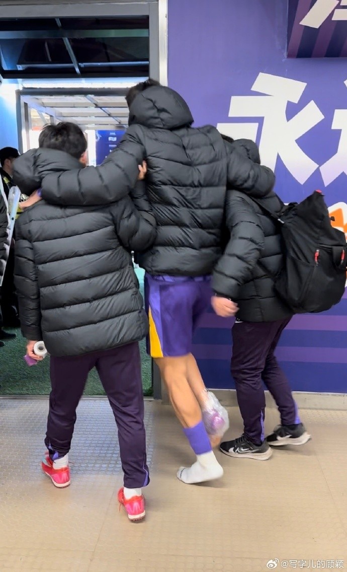 比賽中他去檢查車拍CT時(shí),腳踝已經(jīng)腫了,當(dāng)時(shí)看情形,隊(duì)里最擔(dān)心的是骨折。影像結(jié)果排除了骨折,意味著最壞的結(jié)果沒出現(xiàn),指向比較復(fù)雜的韌帶問題,但是到底有多嚴(yán)重,需要核磁共振進(jìn)一步認(rèn)定,再制定恢復(fù)方案,而拍核磁大概也要等稍微消腫。估計(jì)于指導(dǎo)籠統(tǒng)說“最近幾場(chǎng)無法登場(chǎng)”,也是這個(gè)原因?;氐綀?chǎng)地后,薩爾瓦多執(zhí)意從擔(dān)架車上下來,要返回球場(chǎng)和隊(duì)友們?cè)谝黄穑ň褪沁@張圖),結(jié)果于指導(dǎo)正好迎面而來,把他攔回休息室了。