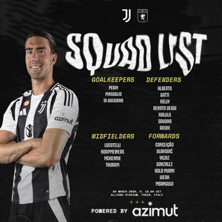 3月29日訊 北京時(shí)間明天凌晨1點(diǎn),尤文將在意甲第30輪比賽中主場(chǎng)對(duì)陣熱那亞,這將是尤文新帥圖多爾的首秀,尤文公布了此役的球員名單,弗拉霍維奇、小孔塞桑在列,坎比亞索、道格拉斯-路易斯缺席。