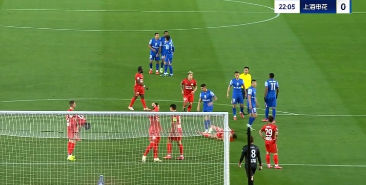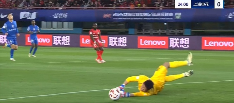 第8分鐘,申花前場右側定位球開到禁區(qū),路易斯頭球攻門角度太正被門將沒收,同時也是越位在先了↓