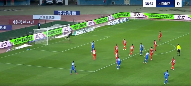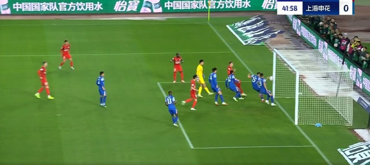 第39分鐘,申花前場連續(xù)的進攻,吳曦左側肋部的凌空抽射被門將抱住↓