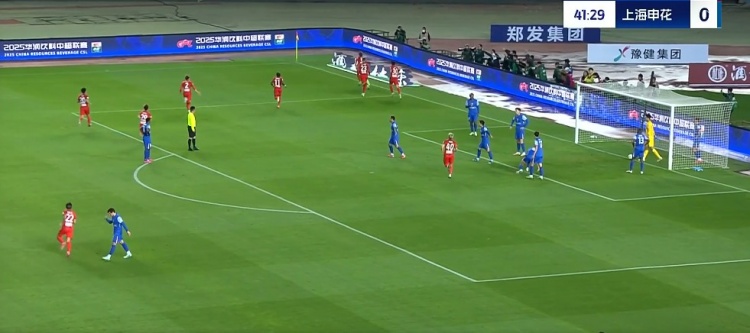 第42分鐘,王上源定位球開到禁區(qū),鮑亞雄出擊失誤造成申花禁區(qū)內一片亂戰(zhàn),吳曦門線極限解圍,后續(xù)阿奇姆彭左側得球再傳中,邁達納近距離頭槌破門!VAR介入后確認進球有效,河南主場1-0領先↓
