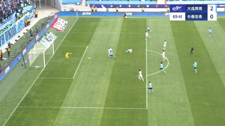 03月29日訊 大連英博vs長春亞泰第70分鐘,呂焯毅傳中,馬萊萊搶點掃射破門!大連英博2-0領先!