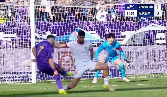 上半場(chǎng),天津津門虎1-0青島海牛。