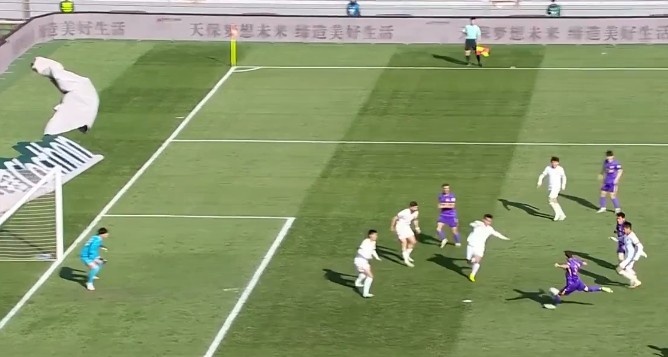 第21分鐘,孫銘謙打門被封堵,巴頓補(bǔ)射破門,但主裁判經(jīng)VAR確認(rèn)后示意進(jìn)球無(wú)效?!?/p>