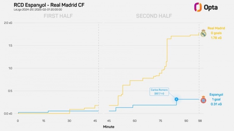 2月2日訊 皇馬在本輪西甲0-1客負(fù)西班牙人,沒能取得進(jìn)球。