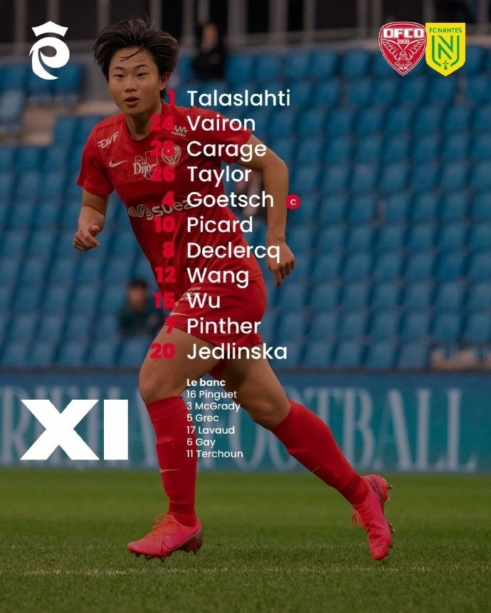 法甲第19輪第戎女足主場(chǎng)3-0戰(zhàn)勝南特女足,吳澄舒、王妍雯首發(fā)出場(chǎng),第17分鐘,吳澄舒接隊(duì)友左路傳中,頭球破門(mén),首開(kāi)紀(jì)錄,連續(xù)兩場(chǎng)有進(jìn)球入賬。上輪聯(lián)賽第戎客場(chǎng)2-0戰(zhàn)勝勒阿弗爾女足,吳澄舒也斬獲一粒進(jìn)球。王妍雯打滿90分鐘,傷停補(bǔ)時(shí)階段被隊(duì)友換下。