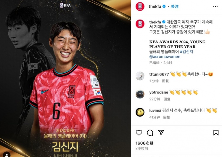 3月31日訊 韓國足協(xié)今日發(fā)布公告,公布了該足協(xié)2024年度各項最佳獎項得主,其中年度最佳年輕球員得主為18歲小將梁民革。
