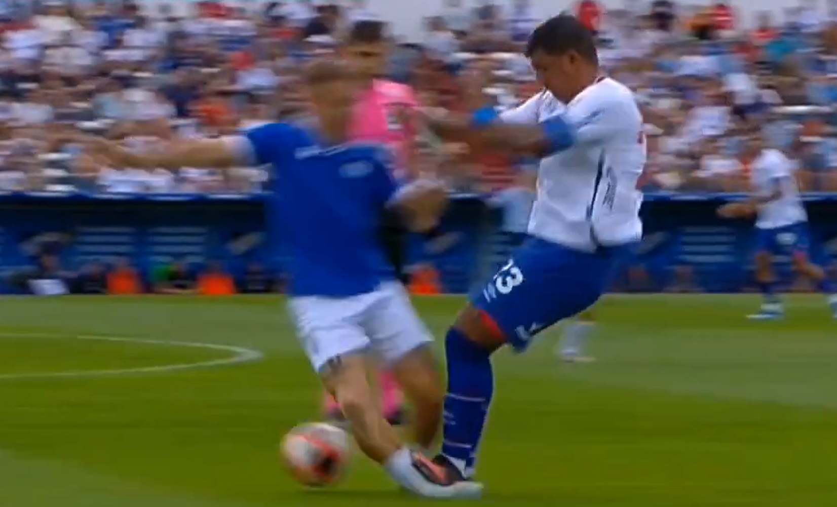 砸人飯碗啊!烏拉圭聯(lián)賽驚現(xiàn)雙腿跳起搶斷????對(duì)手小腿被踩變形