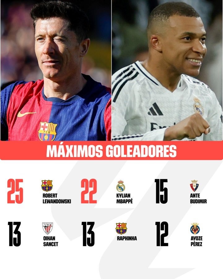 4月1日訊 西甲官方預(yù)熱了本賽季最佳射手的爭(zhēng)奪,并公布了目前射手榜排在前六位的球員。排行如下:1、萊萬(巴薩) 25球2、姆巴佩(皇馬) 22球3、布迪米爾(奧薩蘇納) 15球4、桑謝特(畢爾巴鄂競(jìng)技) 13球5、拉菲尼亞(巴薩) 13球6、阿約澤-佩雷斯(比利亞雷亞爾) 12球 本文標(biāo)簽: 足球 西甲 皇家馬德里 巴塞羅那