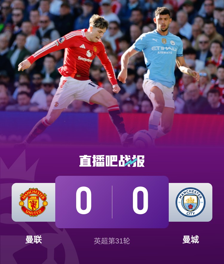 曼聯(lián)0-0曼城近4場曼市德比不敗 藍月亮無緣連勝仍距前四1分