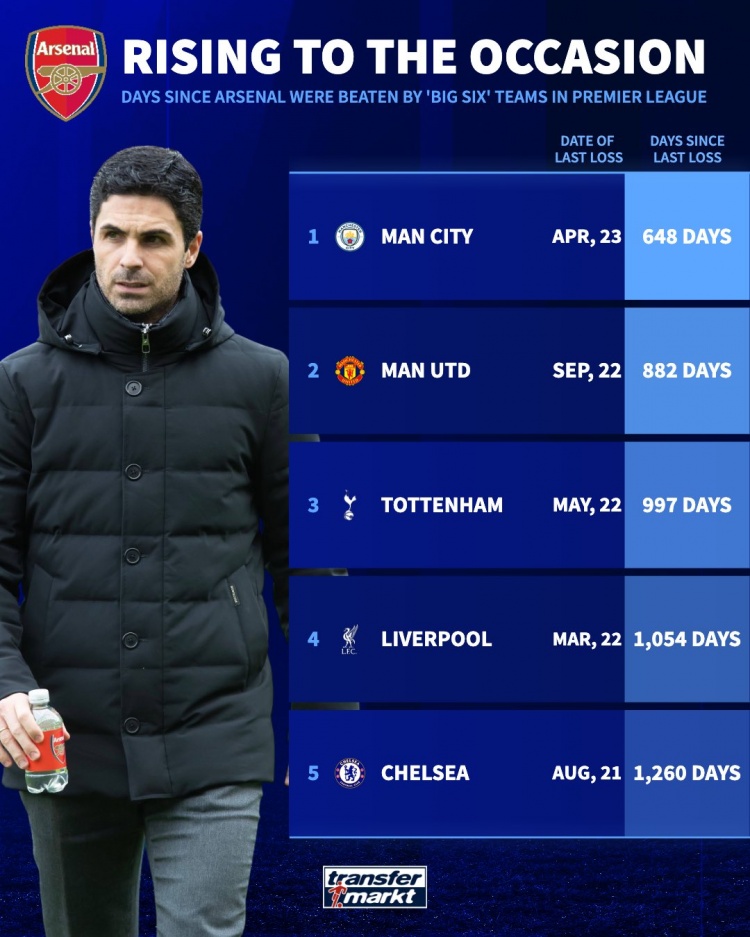 BIG6球隊(duì)上一次在英超擊敗阿森納時(shí)間: