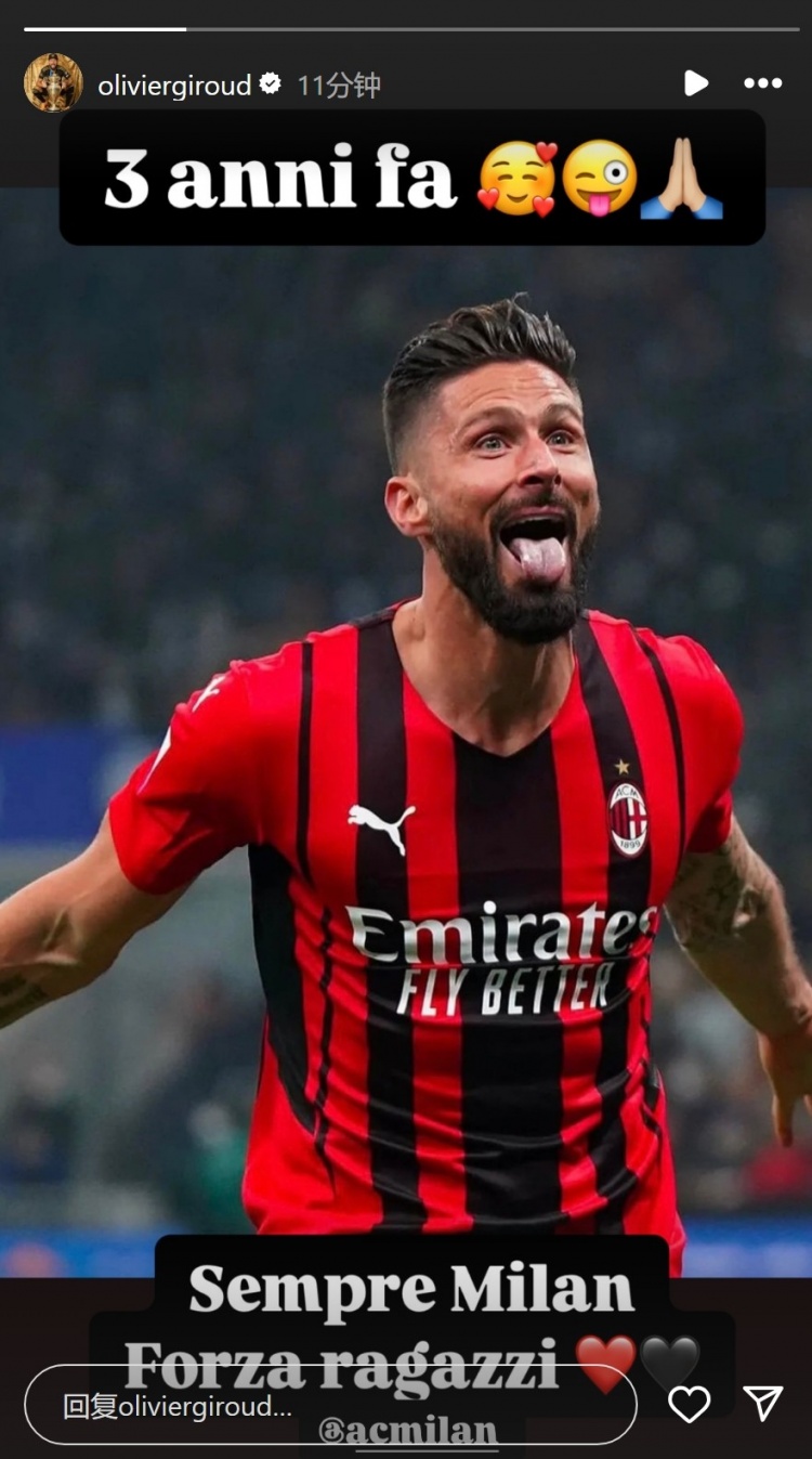 2月2日訊 北京時間明天凌晨1點,米蘭將在意甲第23輪比賽中對陣國米。2022年2月5日的米蘭德比中,吉魯為米蘭打進2球,幫助球隊2-1擊敗國米。吉魯在社交媒體上曬出自己當(dāng)時慶祝進球的照片,配文:“三年前。永恒的米蘭,加油兄弟們!” 本文標(biāo)簽: 足球 意甲 AC米蘭 MLS