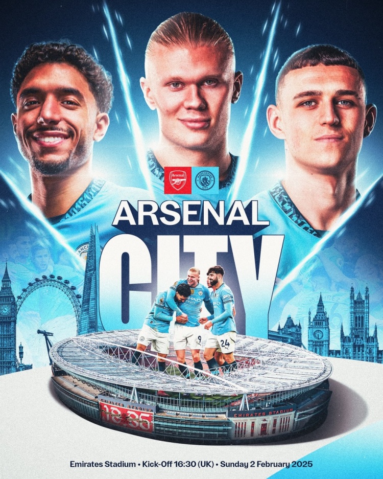 2月2日訊 北京時(shí)間明天凌晨00:30的英超焦點(diǎn)大戰(zhàn),曼城將前往酋長(zhǎng)球場(chǎng)對(duì)陣阿森納。賽前,曼城曬出海報(bào),預(yù)熱這場(chǎng)比賽。