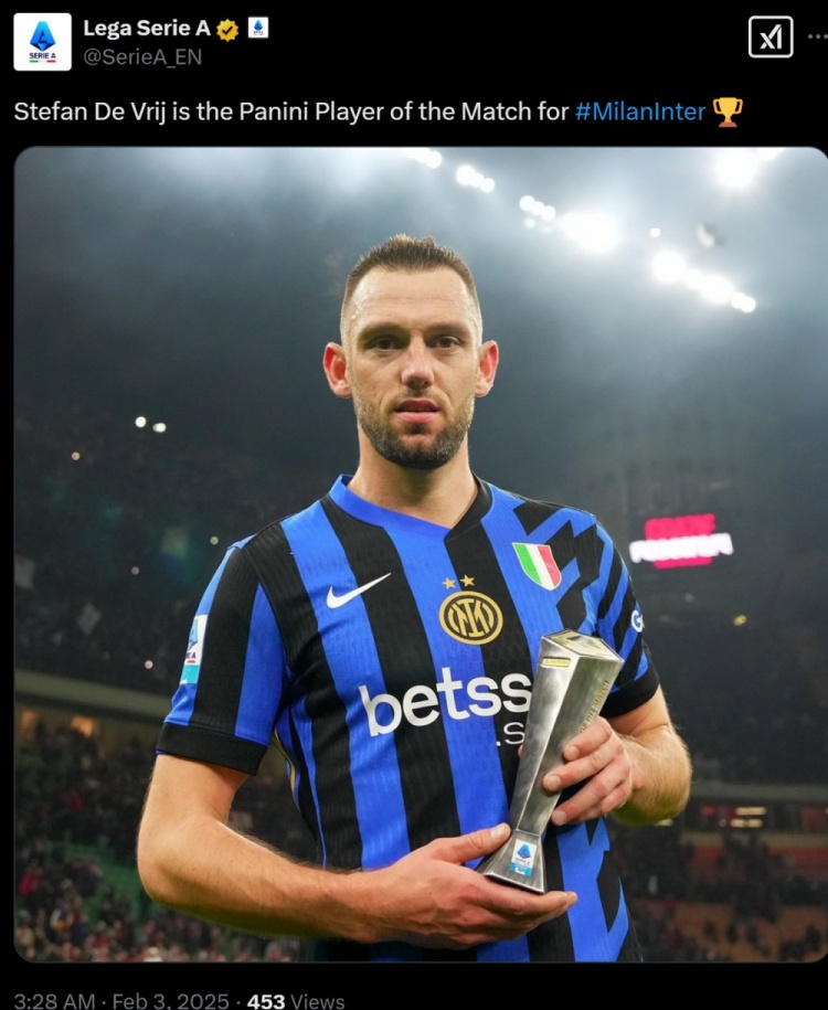 2月3日訊 剛剛結束的米蘭德比中,國米1-1絕平米蘭。賽后,打入絕平進球的德弗里當選全場最佳球員。本場比賽中,德弗里2次射門1次射正便打進1球,他1次過人成功,傳球成功率高達95.9%。在防守端,德弗里貢獻4次解圍、2次攔截、2次搶斷。他4次地面對抗贏下了3次,9次爭頂贏下6次。 本文標簽: 足球 意甲 國際米蘭 AC米蘭