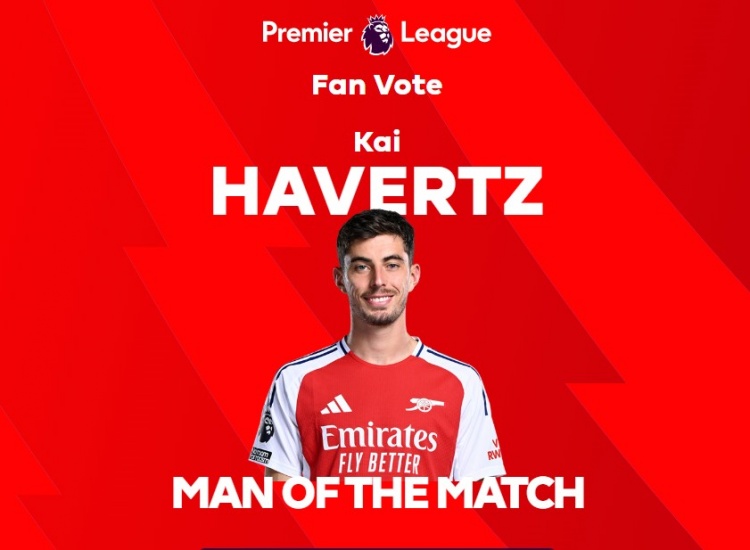 本場比賽哈弗茨傳射建功,賽后他也以30.8%的得票率當選英超官方本場最佳球員。