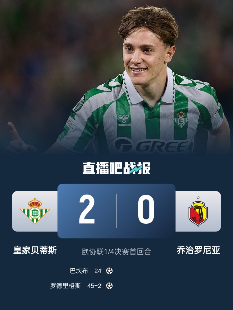 巴坎布破門,貝蒂斯2-0擊敗喬治羅尼亞。