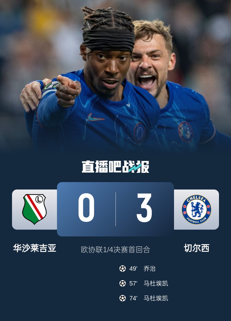 馬杜埃凱梅開二度,桑喬2助,切爾西客場3-0戰(zhàn)勝華沙萊吉亞。