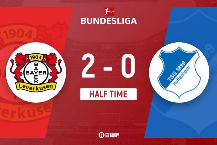 傷停補(bǔ)時4分鐘。上半場比賽結(jié)束,勒沃庫森2-0霍芬海姆。