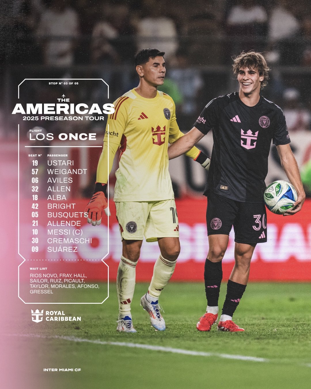 02月03日訊 熱身賽,邁阿密國(guó)際客場(chǎng)對(duì)陣圣米格利托體育,賽前首發(fā)名單公布。
