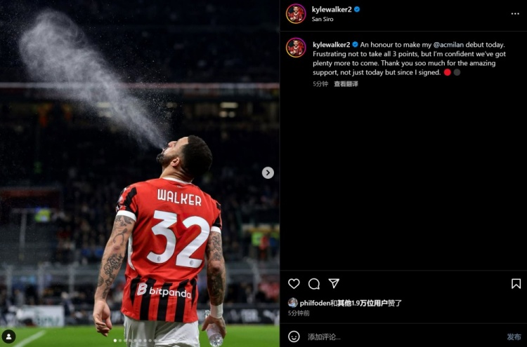 2月3日訊 本輪意甲米蘭德比中,米蘭1-1遭國米絕平。賽后,迎來米蘭生涯首秀的沃克更新社媒,向球迷表示感謝。沃克寫道:非常榮幸能在今天迎來我的米蘭生涯首秀。很遺憾我們沒能全取三分,但我相信我們未來還會取得更多成就。感謝你們了不起的支持,不僅僅是在今天,而是自從我加盟后就在支持我。本場比賽,34歲的沃克發(fā)揮出色,貢獻(xiàn)了2次解圍4次搶斷,6次對抗成功4次。 本文標(biāo)簽: 足球 意甲 AC米蘭