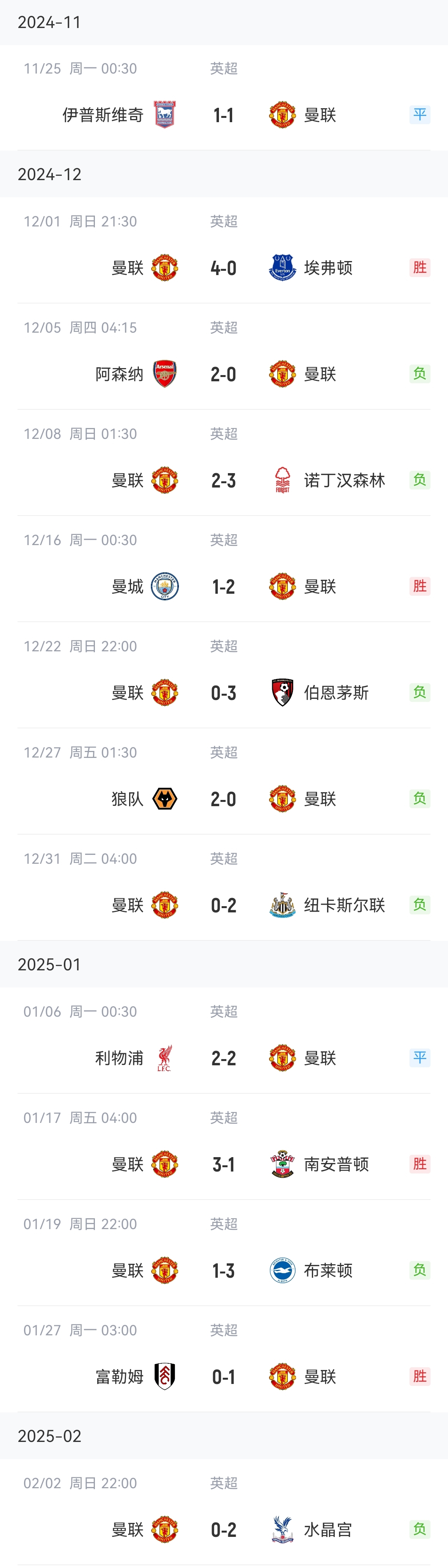 02月03日訊 曼聯(lián)主場0-2完敗于水晶宮,遭遇阿莫林帶隊(duì)以來的聯(lián)賽第7敗。