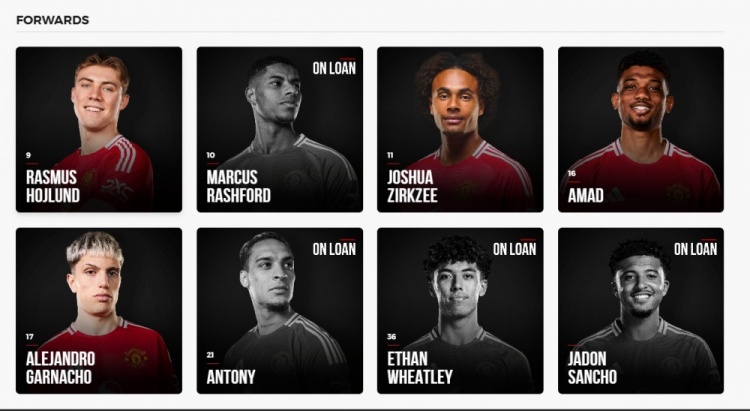 曼聯(lián)本賽季一線隊鋒線陣容: