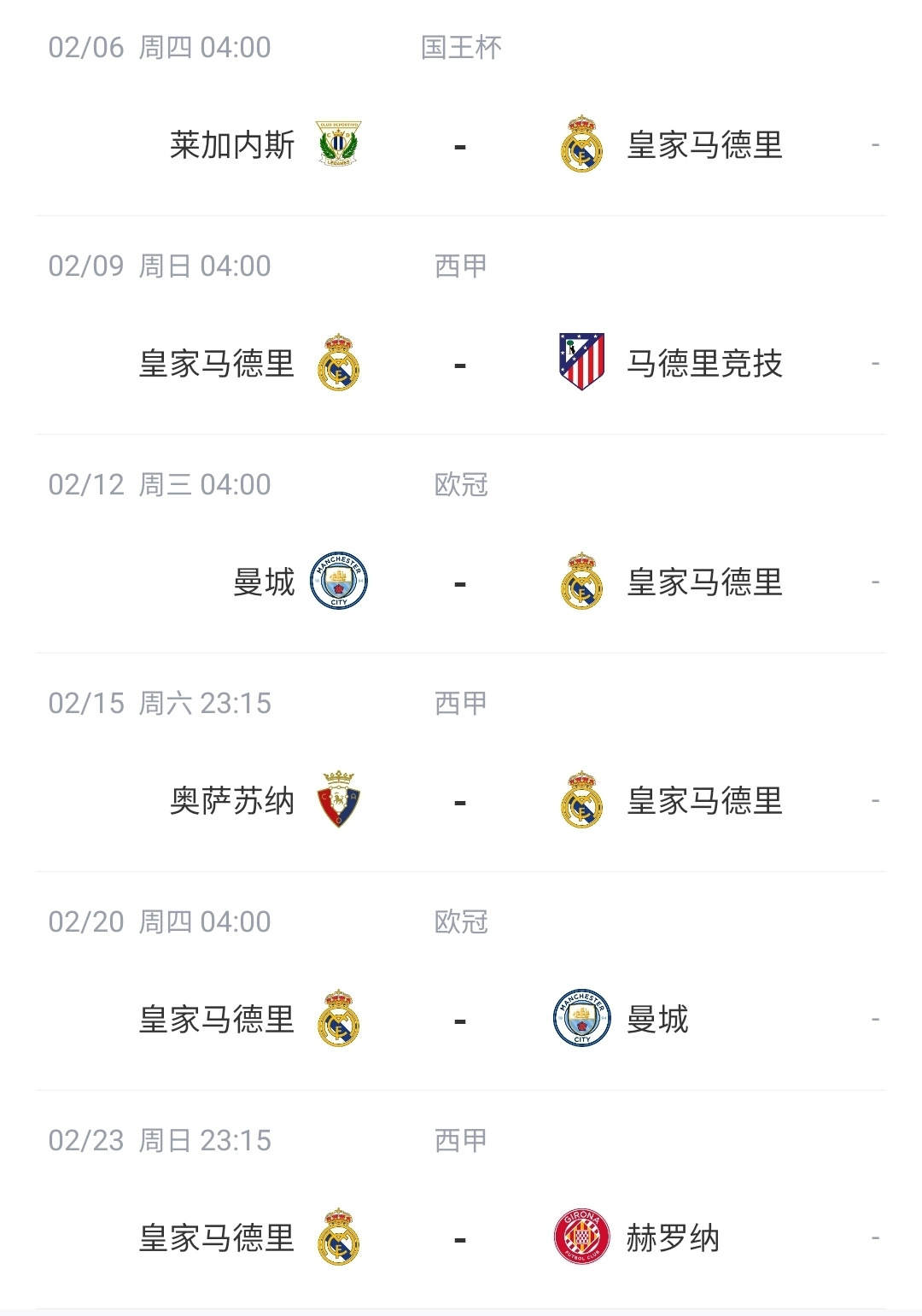 2月12日,皇馬在歐冠淘汰賽附加賽首回合客場(chǎng)對(duì)陣曼城